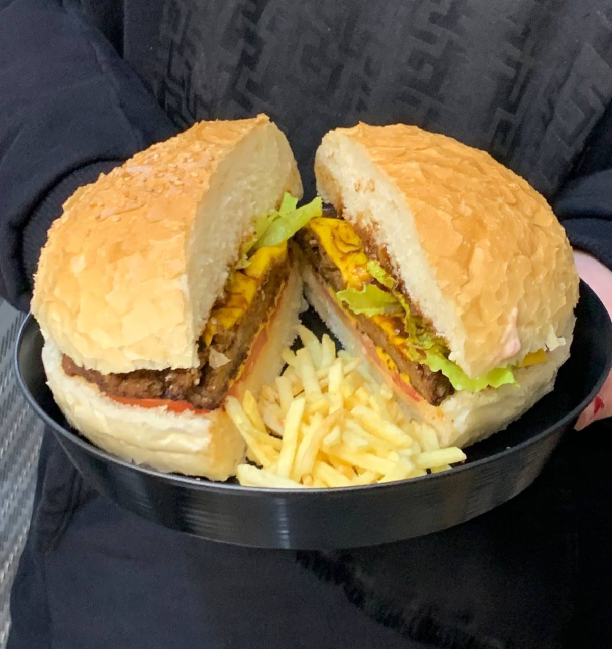 راسته گوساله ریش ریش شده گوجه، خیارشور، پیازجعفری و سس مخصوص